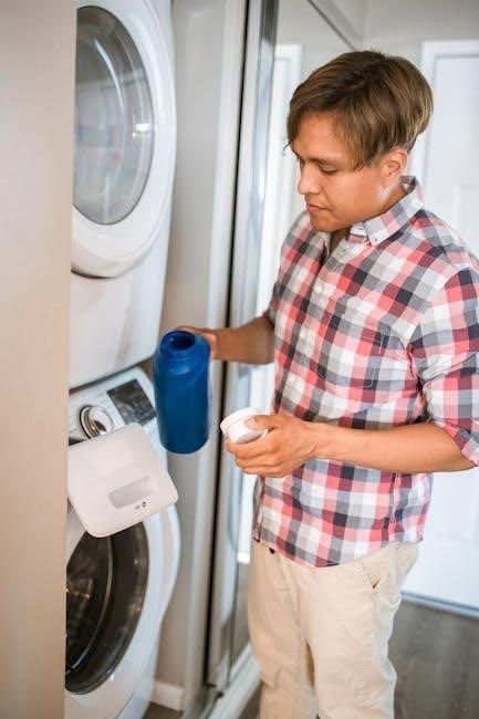 Maintaining a clean washing machine is crucial for preventing odors and ensuring optimal performance. After each use‚ wipe down the exterior with a damp cloth. Regularly clean the detergent dispenser to remove residue buildup‚ preventing clogs and ensuring proper dispensing.