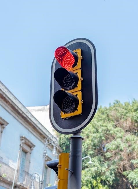New Mexico’s manual specifies signal head sizes – 12″, 15″, and 20″ – based on intersection complexity and approach speeds. 12″ heads suit lower-speed, simple intersections. 15″ provides enhanced visibility for moderate conditions. 20″ heads are mandated for high-speed roadways and complex intersections, ensuring optimal driver recognition and response times. LED technology is standard across all sizes, improving energy efficiency and lifespan.